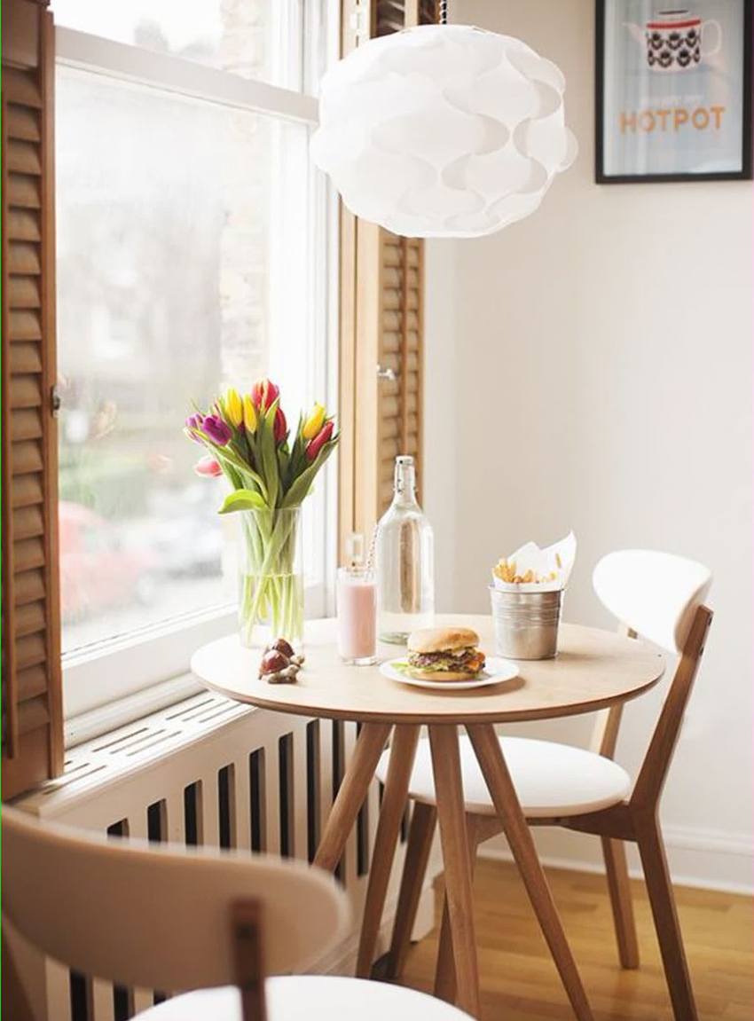 In addition to potted plants, you can also use flower arrangements. Bouquets of peonies, tulips, roses and chrysanthemums look cozy. The most popular option is the execution of compositions from dried flowers - a flower that, even when dry, looks bright and beautiful all year round. It is encouraged when the flowers match the style of the tableware, so that these elements of the interior are in perfect harmony.