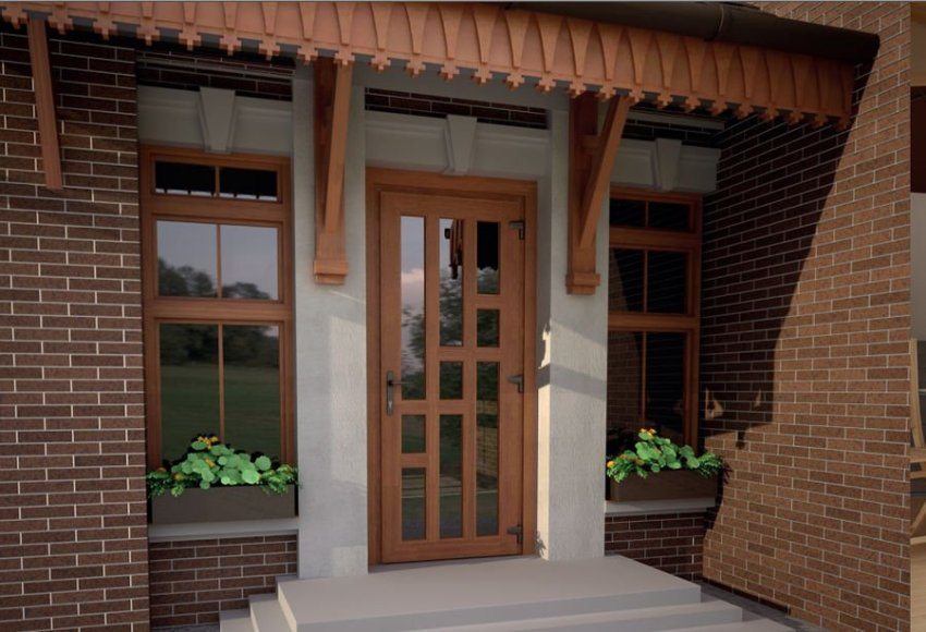 Plastic doors perfectly provide quite reliable heat and sound insulation. At the same time, they are undoubtedly inferior in terms of safety to high-quality metal doors. In terms of aesthetics and design, plastic structures go well with brick, stone, or concrete walls. They will also look on siding facades.