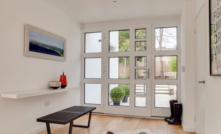 Usually, a plastic entrance door has glass inserts, thanks to which natural sunlight penetrates deep into the room.