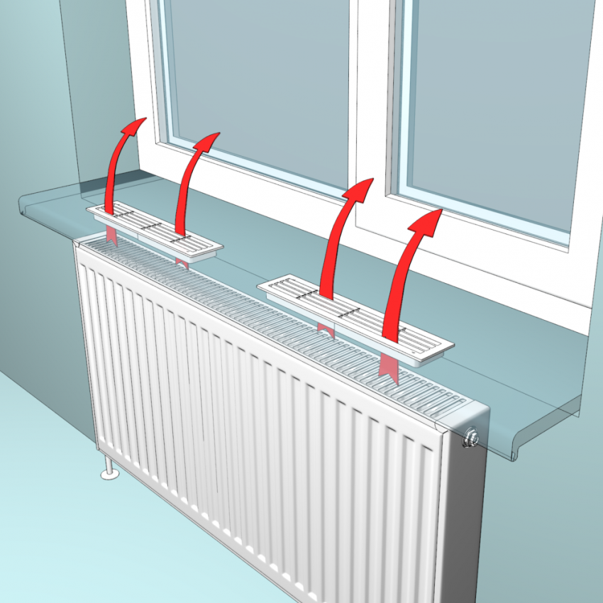 Installing convection grilles in the windowsill avoids the problem of high humidity and, as a result, fogging of windows
