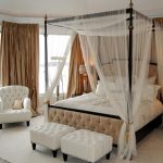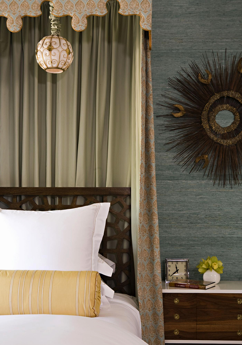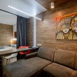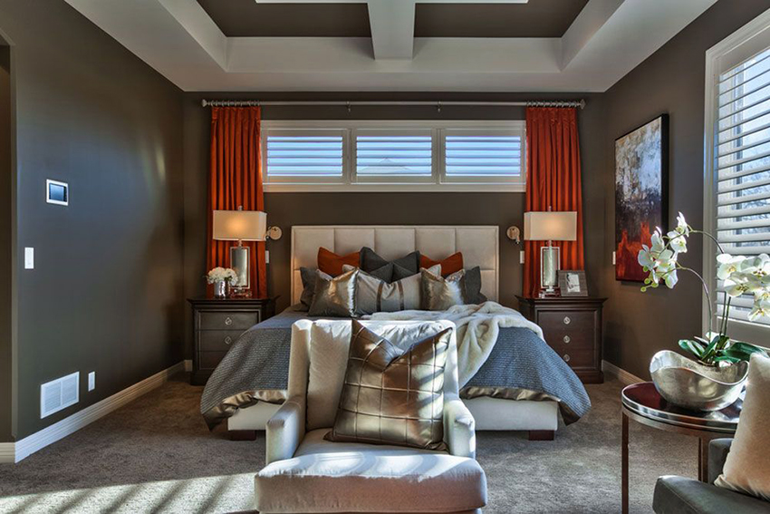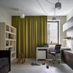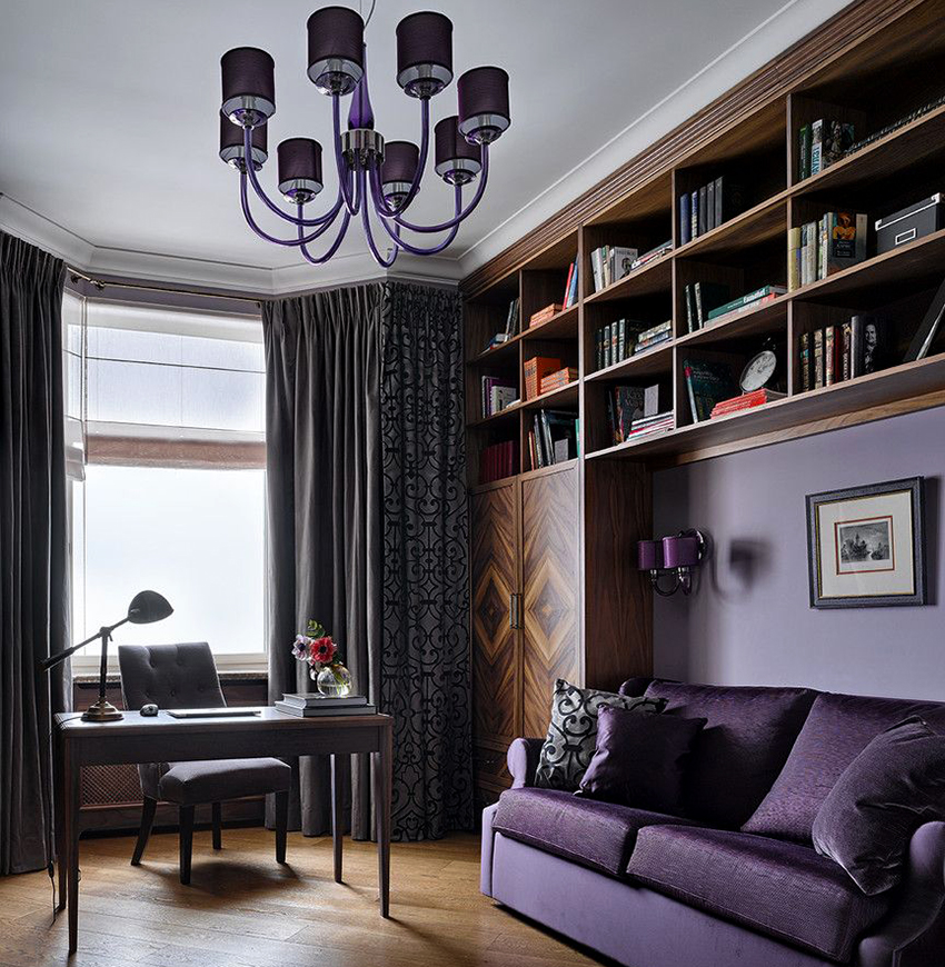 Interior curtains can be used to separate the study from the bedroom. They will muffle the severity of work furniture, making the room more comfortable, and will not violate the glamor of the burnt environment.