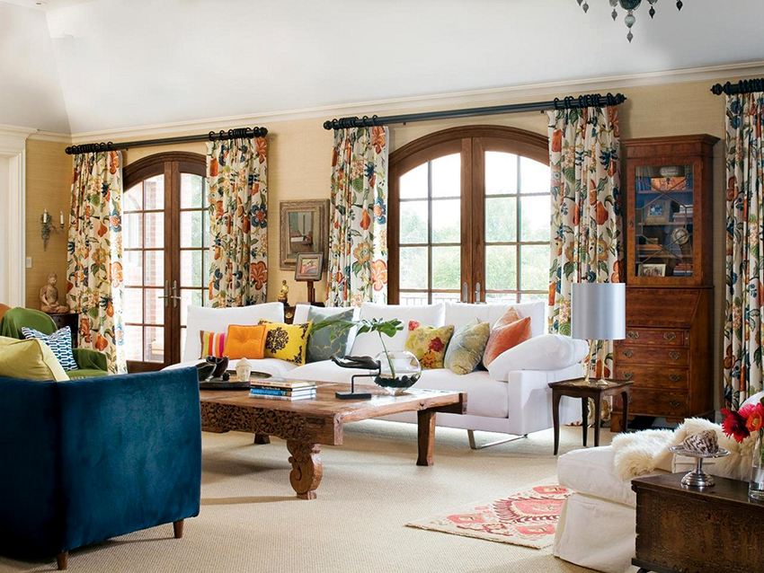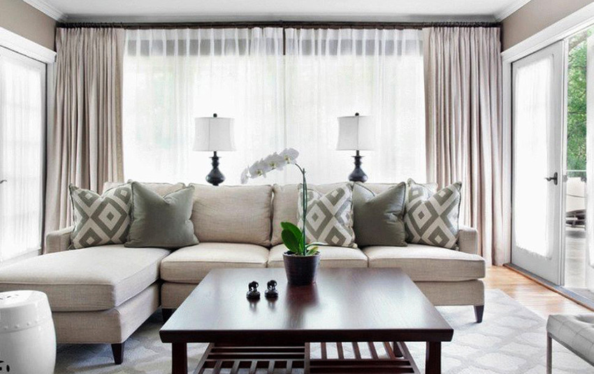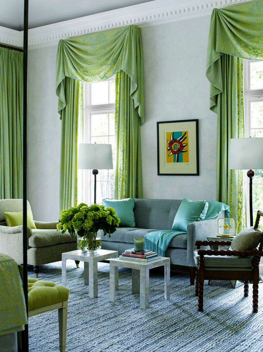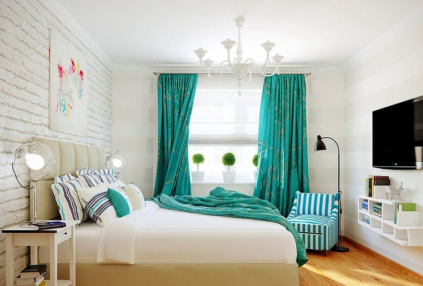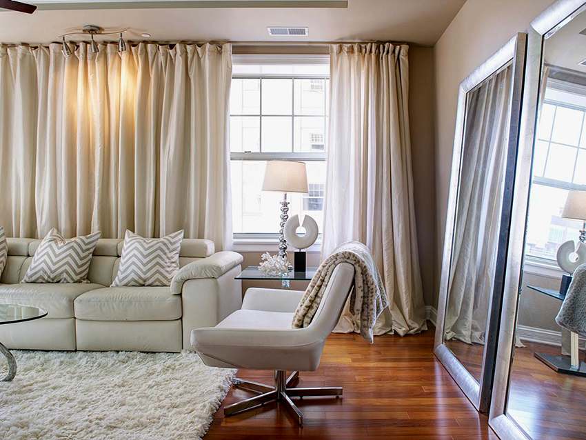 - If the room is decorated in one color, it should be shaded with curtains. Curtain fabric should not blend in with furniture and walls.