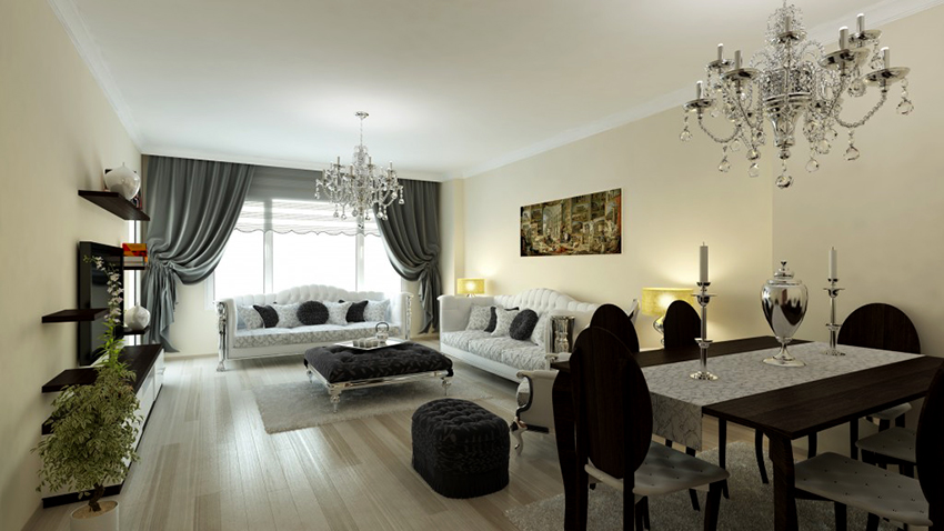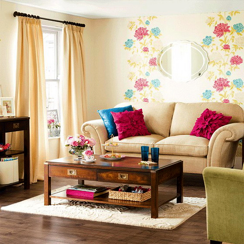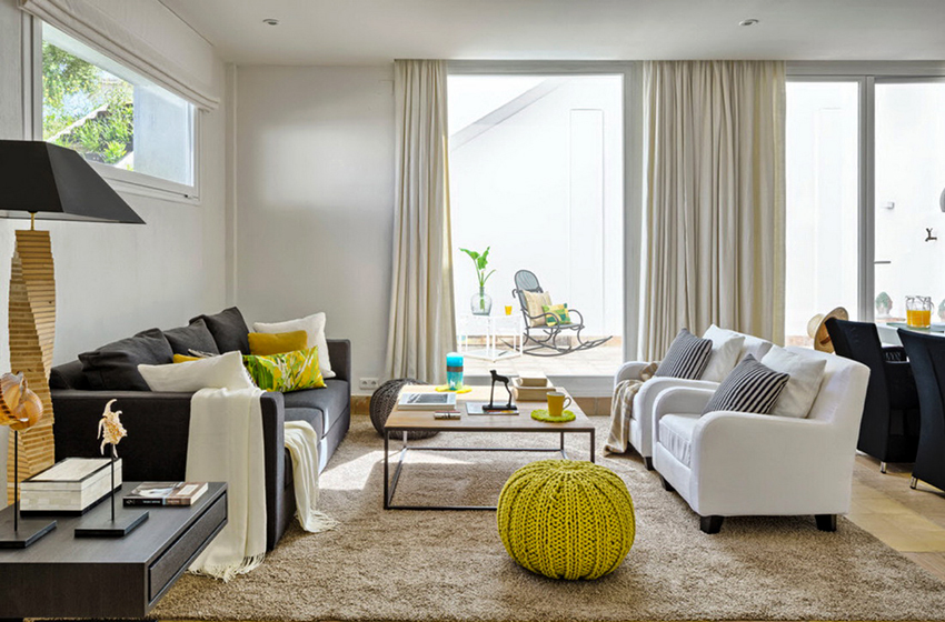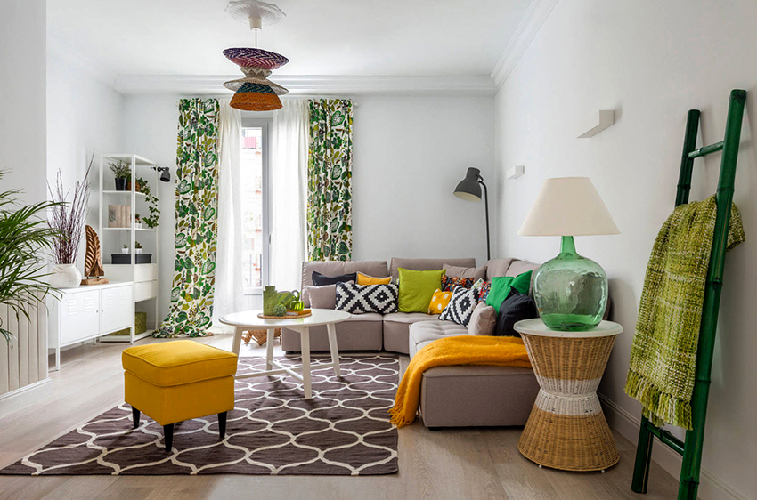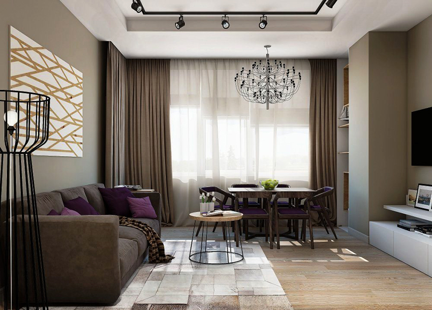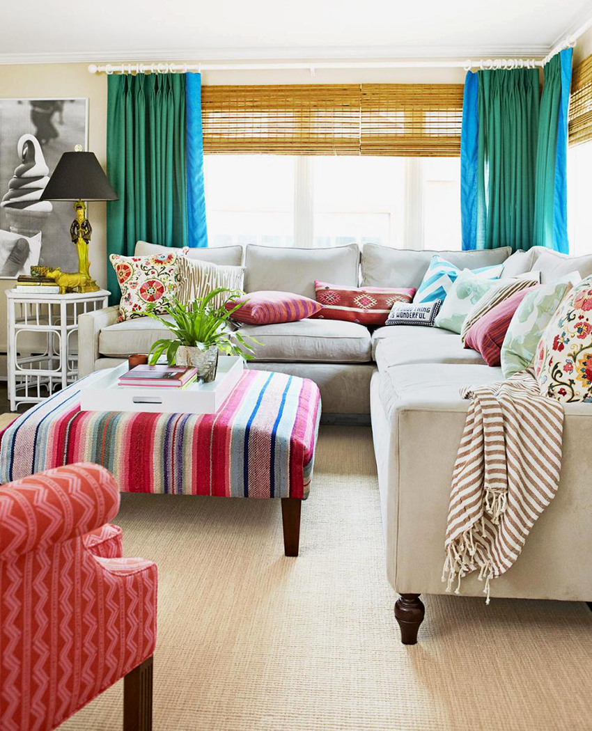 - If the room is decorated in one color, it should be shaded with curtains. Curtain fabric should not blend in with furniture and walls.