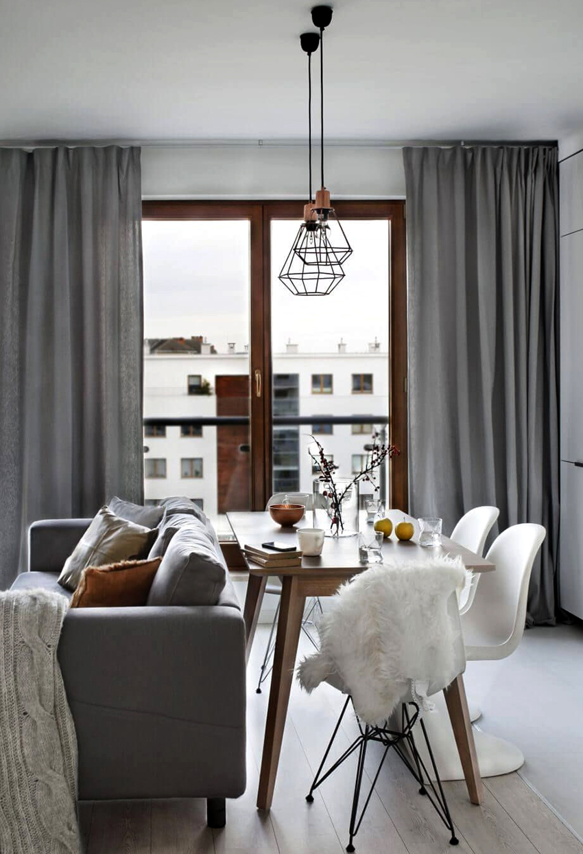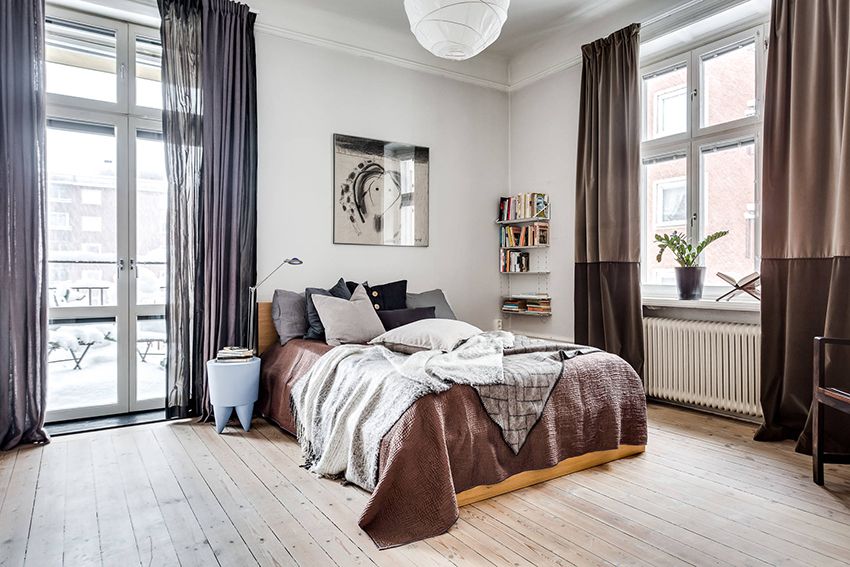The use of thick curtains in the interior of small rooms