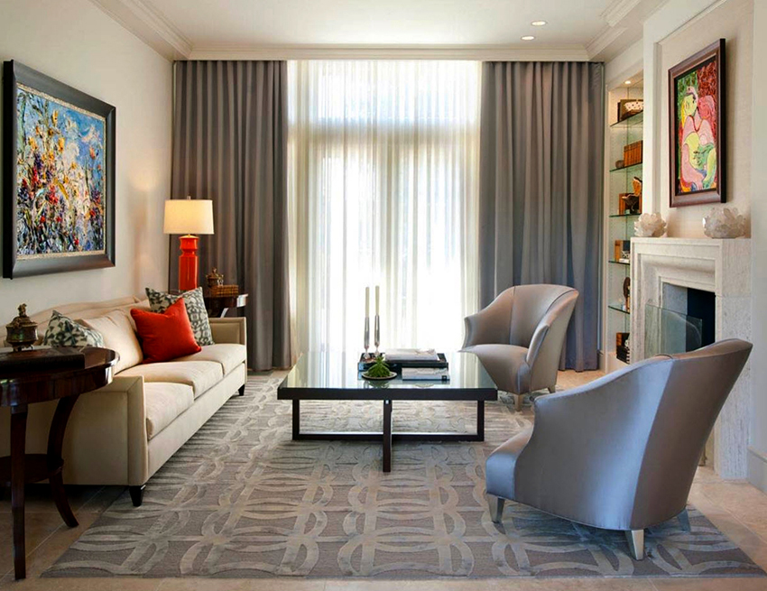 On the photos offered on the Internet - curtains for the living room with increased length.Soft folds laid on the floor add an element of luxury and chic to the room.
