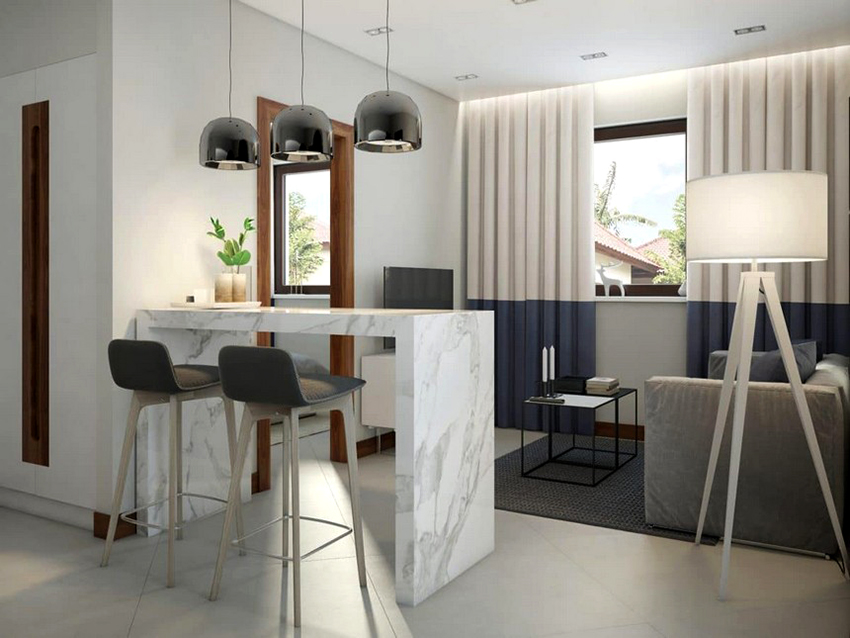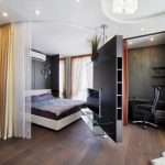 With the help of curtains, you can zone the room. If the size of the canvas is large, that is, the separation line is long, it is better to choose a plain fabric. A ceiling structure made of pipes is suitable as an attachment, and it is better to hang the curtains on the eyelets. When zoning in this way, strength is important. And the movement of the canvases during the opening process will be smooth.