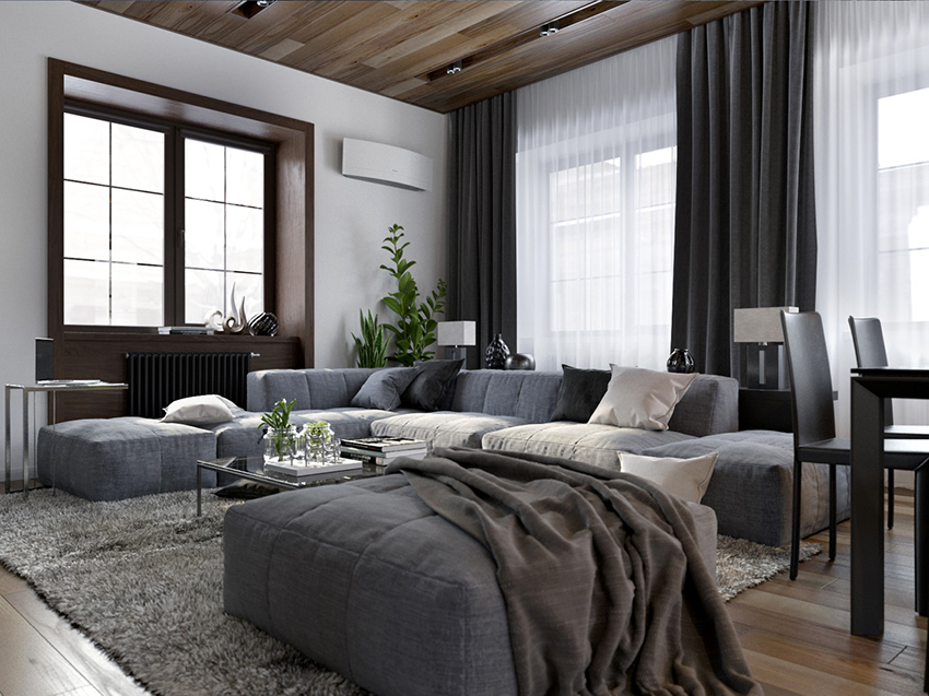 Options for curtains for a living room in a modern style