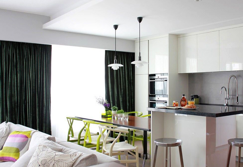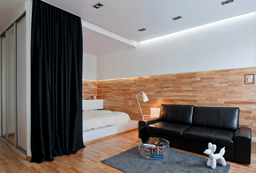 Curtains: this is a convenient way to divide rooms and zoning space