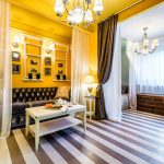 - You can visually increase the height of the room by nailing the cornice to the ceiling and placing the curtains on the floor.