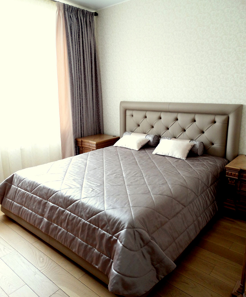 - Easy care. The material does not absorb odors, does not attract dust, therefore it is well washed.