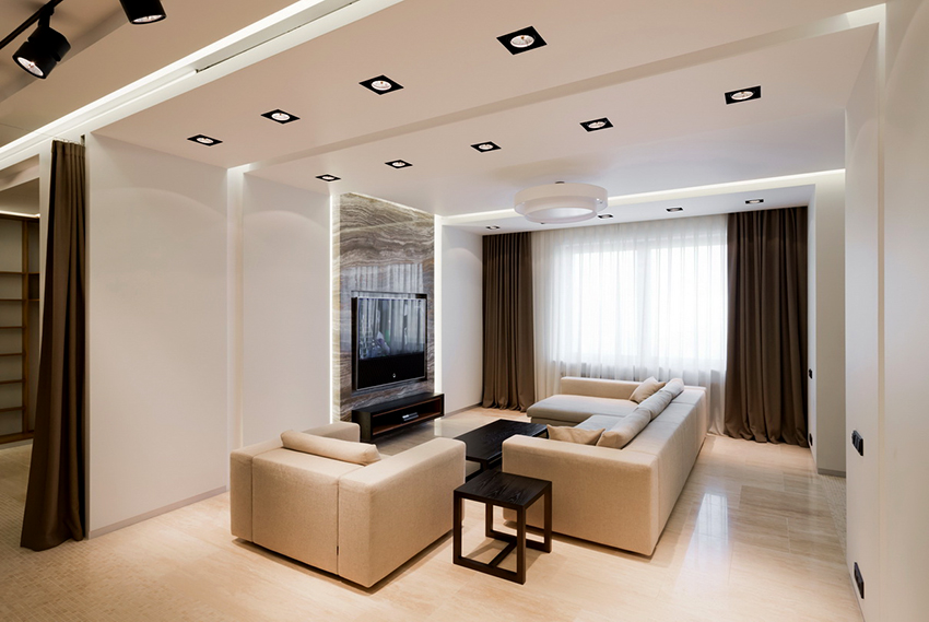 - Dark curtains should be used in large rooms. They will give the room comfort, intimacy.
