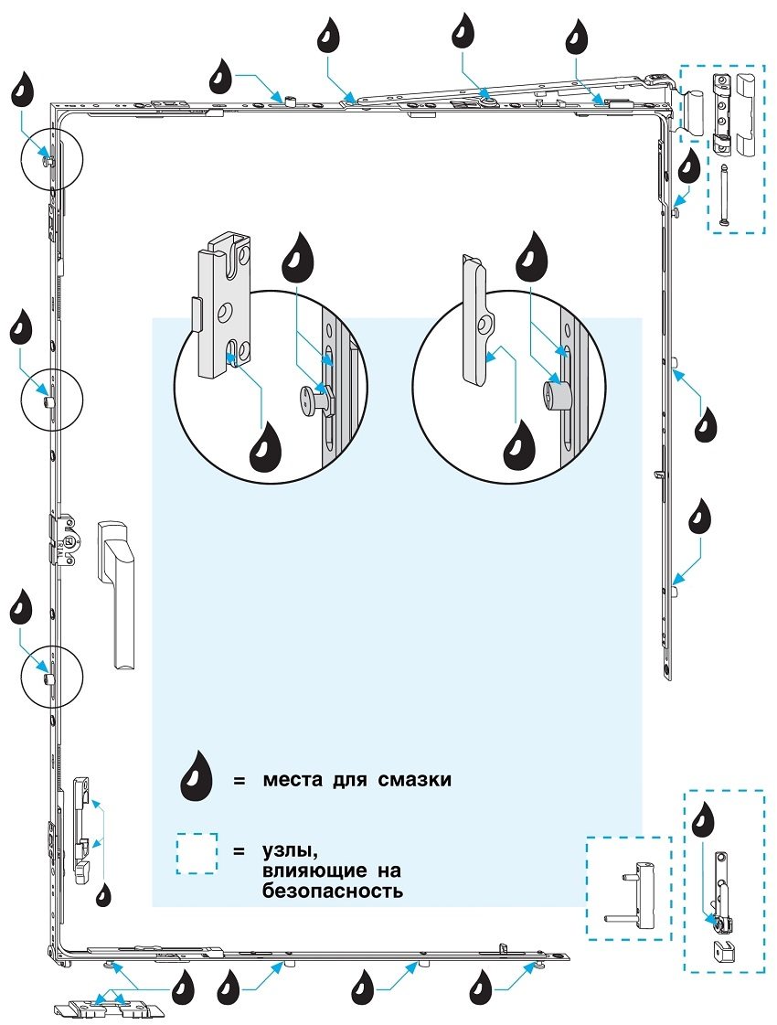 If the sash handle opens with a certain effort, several reasons are possible. This can be contamination of the mechanism and accessories, drying out of the lubricant or excessive force of the pressure mechanism.