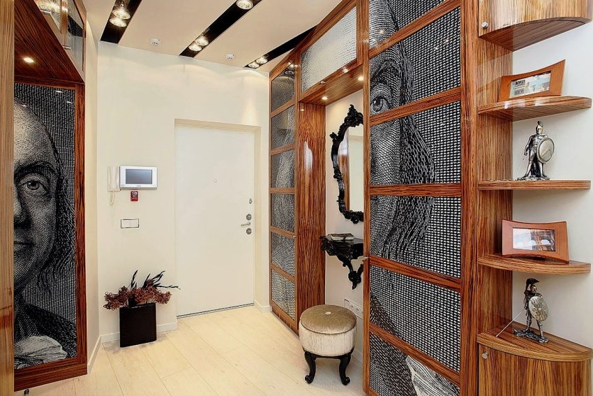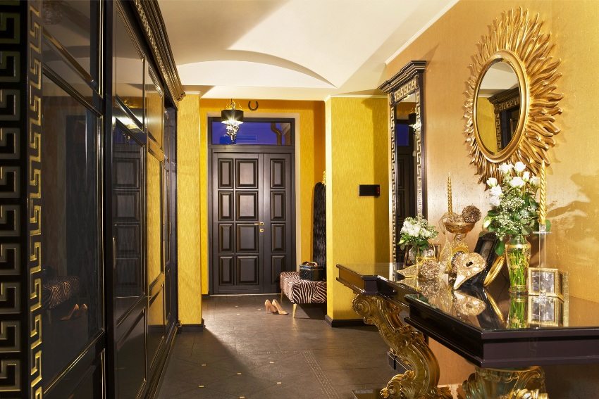The decoration of the entrance door is in harmony in style and color with the furniture in hallway
