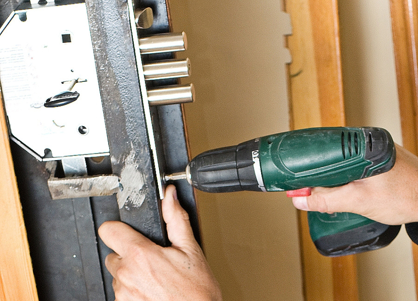 To fix the lock, the following are used: milling cutter, hammer, chisel, screwdriver, drills, screwdrivers, tape measure