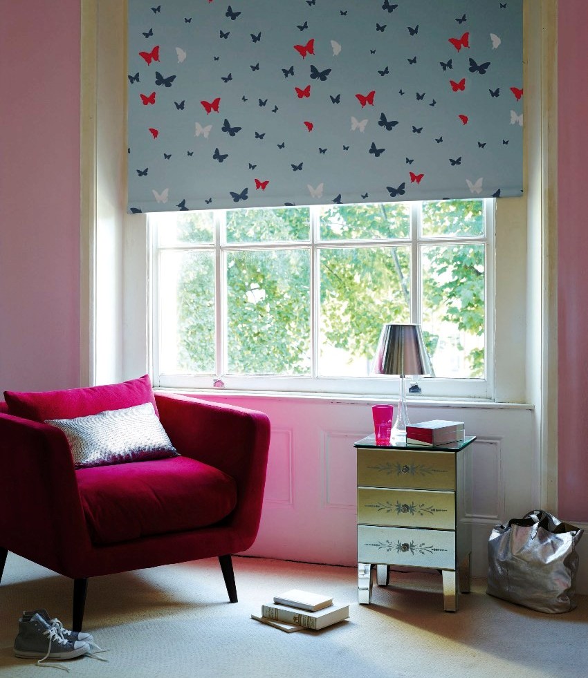 Among fashionable and beautiful novelties, such models can be distinguished. Roller blinds Esker Minirollo is made of polyester. The manufacturer produces products with a width of 0.37-1.15 m with a standard length of 1.7 m. On the surface of a plain canvas, a pronounced print in the form of buttercups, a winter garden, white and pink butterflies or white and beige dandelions is visible. Photo blinds on a plastic window display these variations. The price of the product starts from 750 rubles. depending on the size of the blinds.