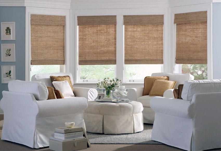 Rolled blinds made of bamboo straw are made from many of its types and varieties of different textures and shades, with interlacing of linen or silk threads