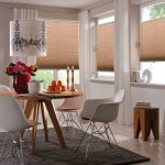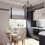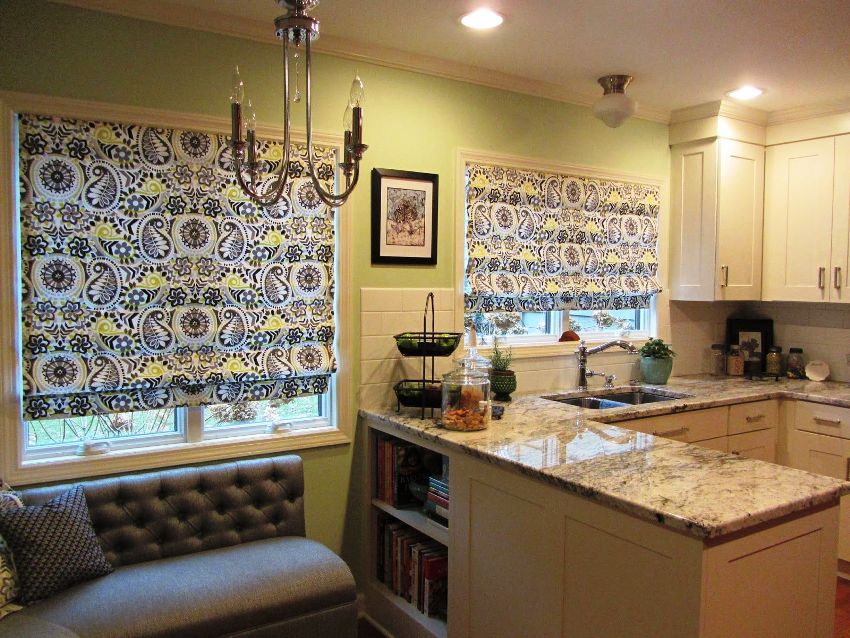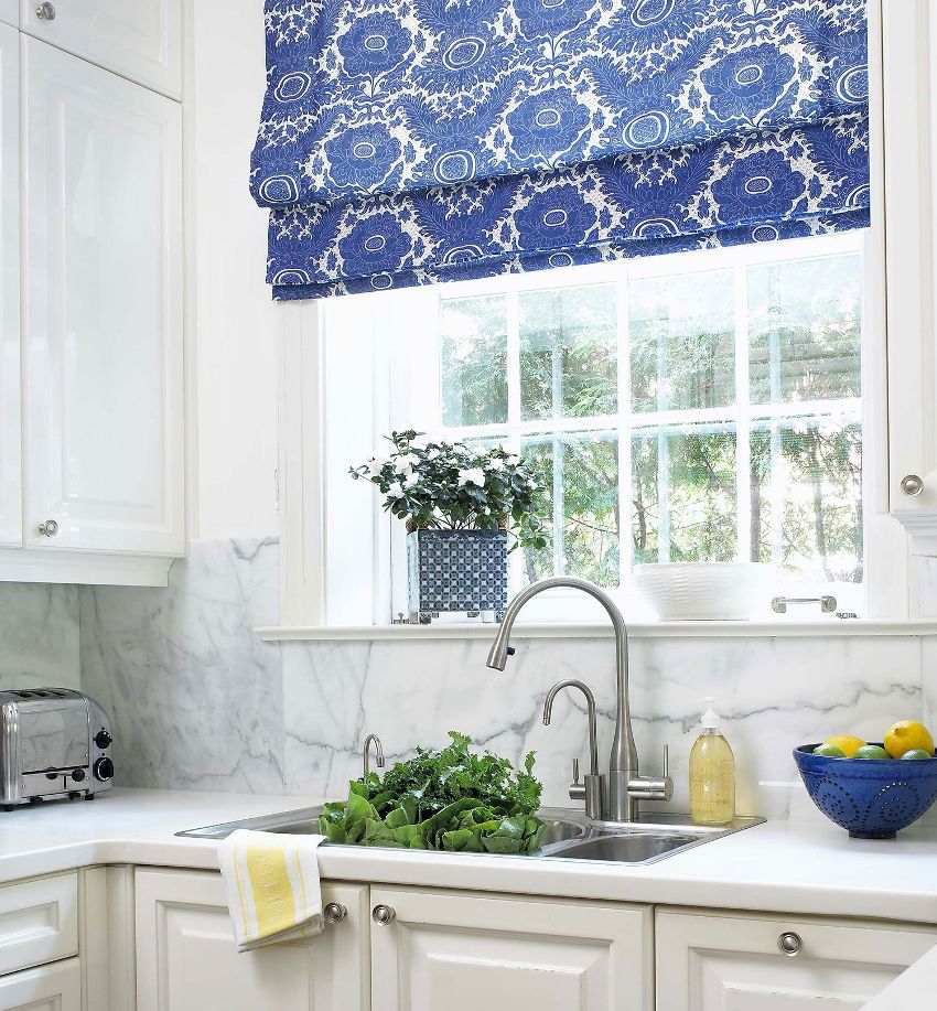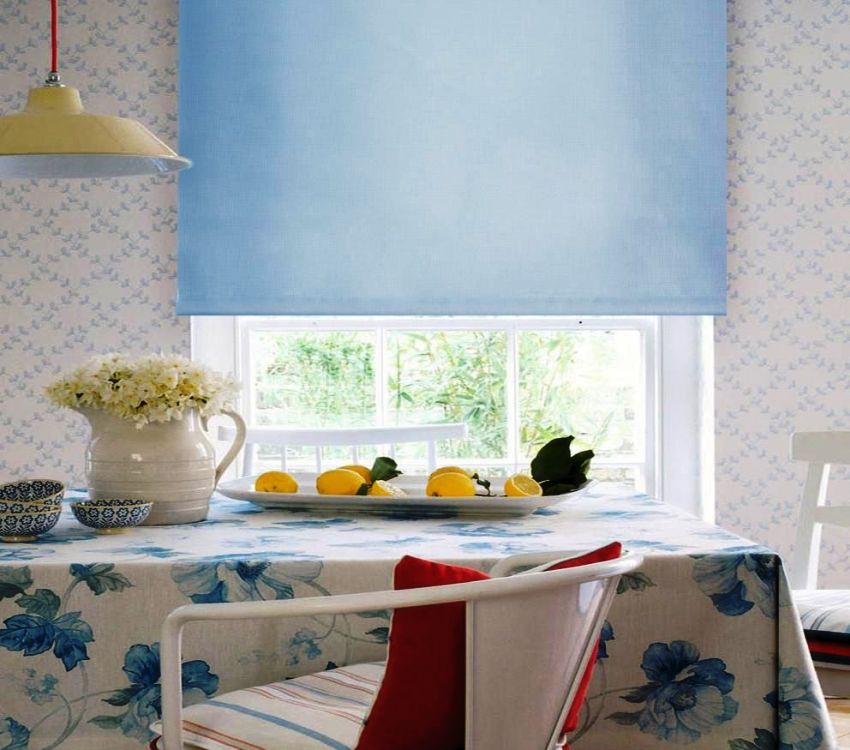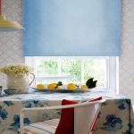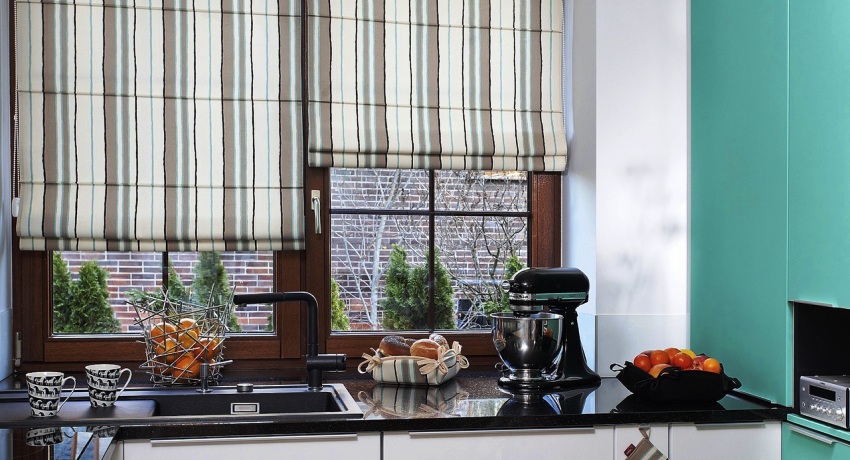 The main condition when choosing Roman blinds is not to be mistaken with the fabric. If the room is sufficiently lit, then models made in warm pastel colors are suitable. The presence of a small pattern is allowed. If the kitchen is quite light, then you can choose a contrasting color. Due to the fact that the fabric for Roman blinds is impregnated with special compounds, it practically does not fade in the sun and retains an attractive appearance for a long time.