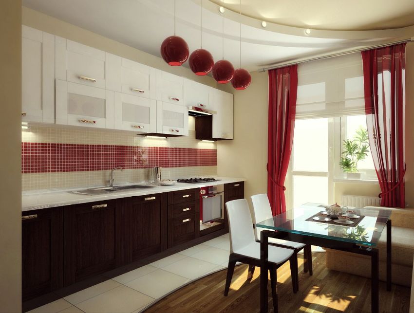 When choosing the color and texture of the kitchen curtain, you need to take into account the geometry of the room and the design style.