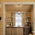 Cafe curtains are designed more to decorate a window in a small room, therefore they are considered the best option for curtains for a small kitchen. The curtains are mounted on a thin strip that is located in any part of the window, for example, it can be in the middle of the window or higher.