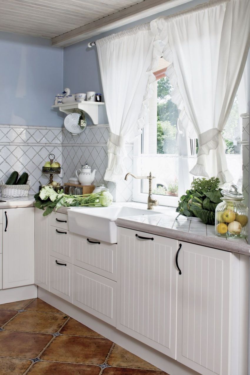 - General kitchen style. This factor affects the color, style, length and other parameters of the product.