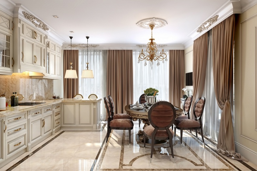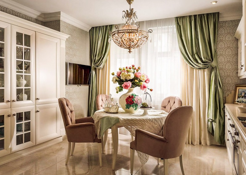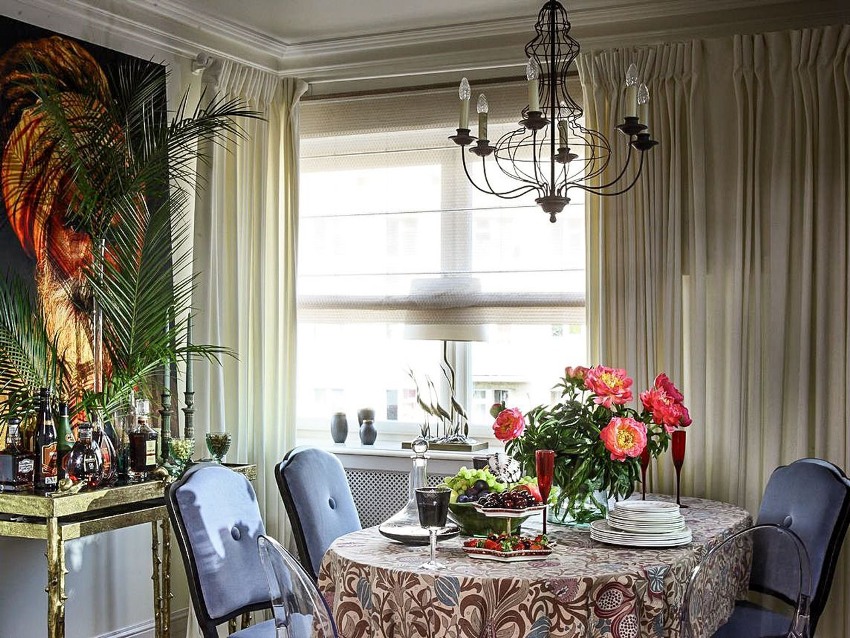The kitchen is rightfully considered the place where the probability of surface contamination is the highest, because it is not only where food is cooked, but also consumed. In many kitchens, the dining table is placed near the window to provide ample natural light. Therefore, the first thing that should make a start when choosing curtains in the dining room and in the kitchen is practicality.In this case, the priority will be curtains that do not fade, do not fade, they must also be resistant to the accumulation of dust, third-party odors, soot and dirt.