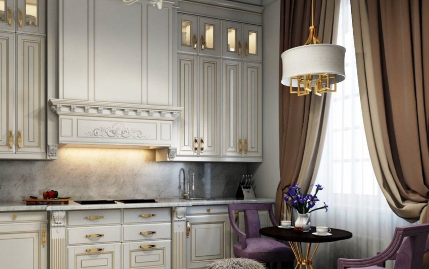 Classic French curtains are also called awnings and are considered a good idea for kitchen curtains because they are both stylish and modern. Before choosing this option, you need to understand that it is not suitable for decorating a small window in a small room, because it visually makes it even smaller than it is. Therefore, it is better to leave the version of the French model of curtains for the kitchen for a spacious room with high ceilings and panoramic windows.