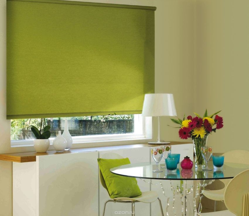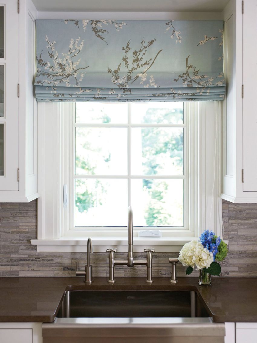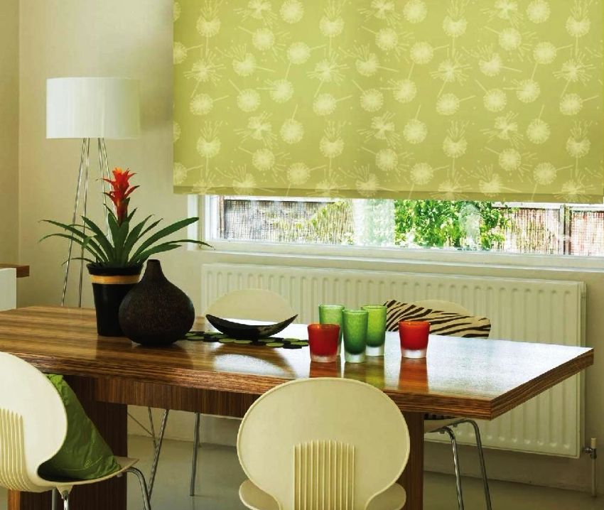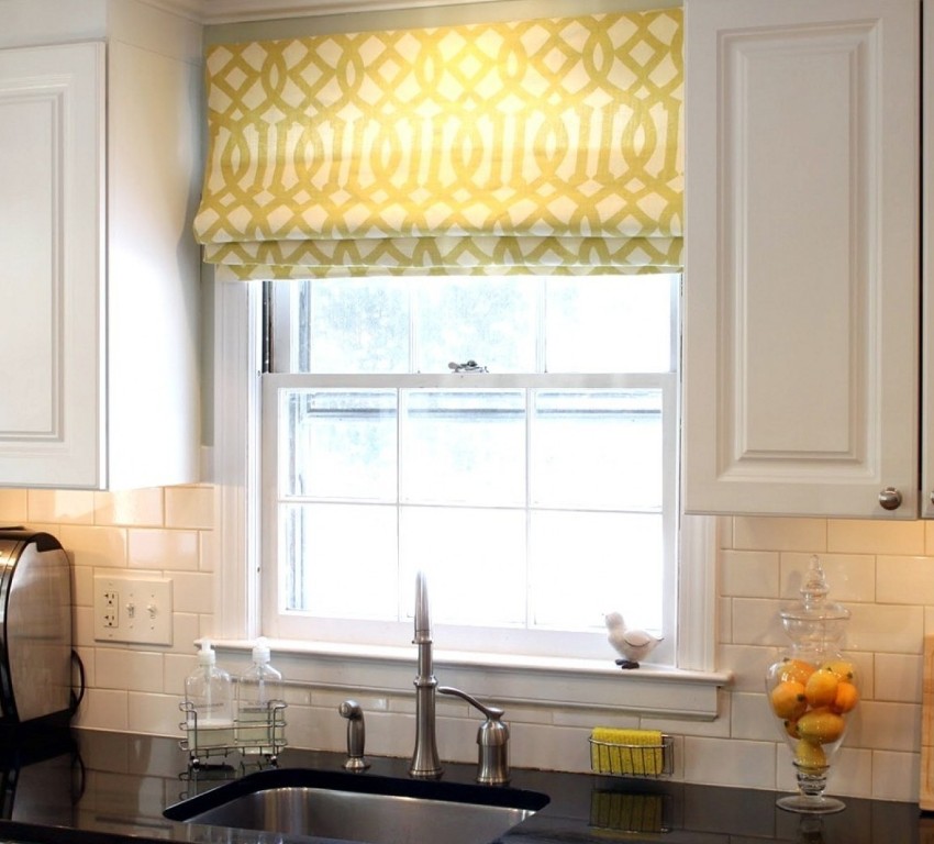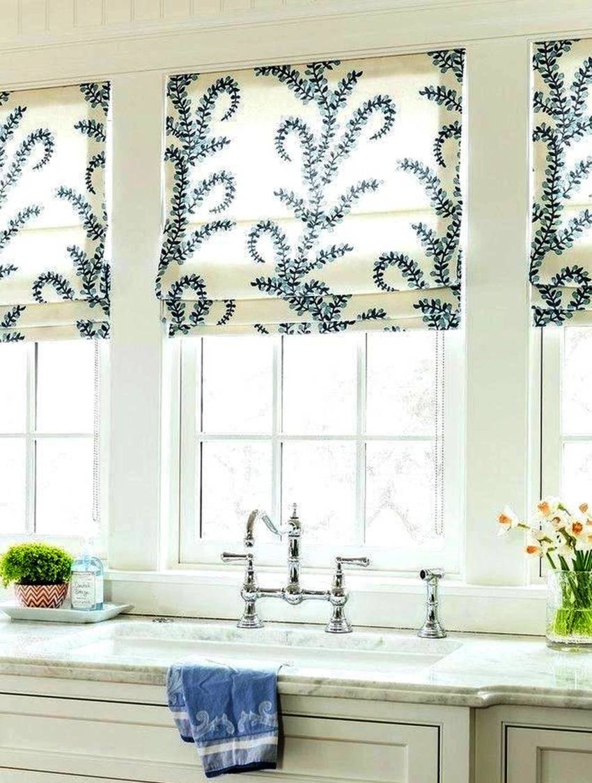 Roman blinds are considered a functional and practical option for the kitchen, while they fit well into any room interior. Roman blinds combine well with curtains and drapes in the kitchen. When unfolded, they are a solid sheet, which, when assembled, forms soft, uniform and beautiful folds.Fashionable Roman blinds are made from any material and are usually installed in the place where there is no possibility of using wide curtains.