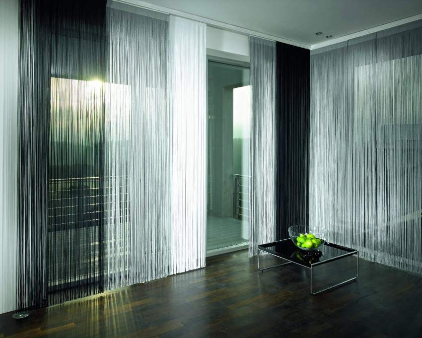 Thread curtains (muslin) appeared in Russia several years ago, although they have been used in the Middle East for quite some time. Thread products are a curtain made up of separate threads. Interior designers often dilute the appearance of curtains with a variety of beads, feathers, beads. Kiseya is considered a good option for curtains for a small kitchen and for large rooms.