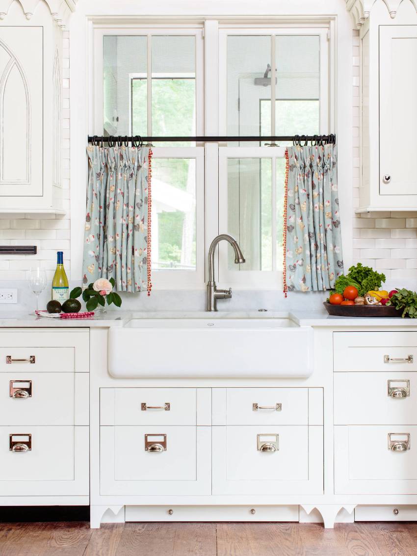 If you look at the pictures of curtains in the kitchen, then you can pay attention that most often they choose models of medium length, which reach the windowsill. Deviations are usually no more than 30 cm.This option is considered the most practical, especially if furniture or household appliances are installed near the window. If the cooking area in the kitchen is far from the window, then in this case, you can pick up long curtains to the floor.