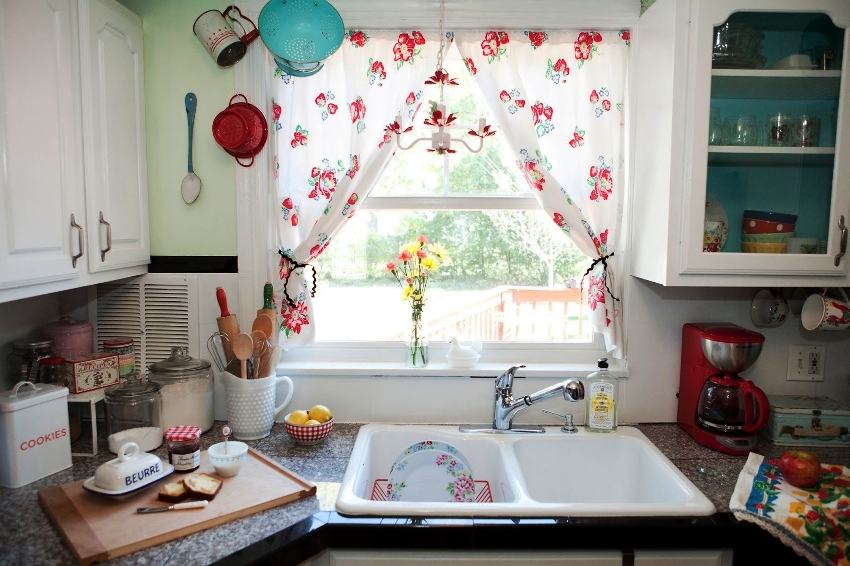 When decorating a window in the kitchen with curtains or curtains, the following criteria should be taken into account: