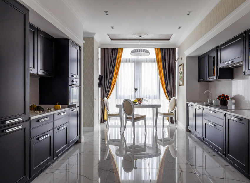 In a rare case, the owners have the opportunity to boast of a spacious kitchen, because in most apartments of the old fund, as well as in modern popular smart apartments, a small room is allocated for the kitchen. In a limited space, it is rarely possible to hang heavy curtains from luxurious fabrics - this option is only possible when decorating a large classic-style kitchen that is combined with a living room.