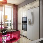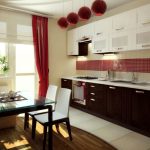 If a kitchen with a balcony is combined with an adjacent room, be it a dining room or a living room, then bright colors and massive patterns are allowed.When the kitchen is small, it is better to give preference to small patterns or just plain textiles. Below are the rules that will help you figure out which curtains are suitable for a kitchen with a balcony door (photos of successful balcony designs are posted in this article):