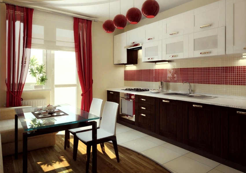 In advance, you should determine the design of curtains for the kitchen with a balcony, choose the optimal color and density of the fabric