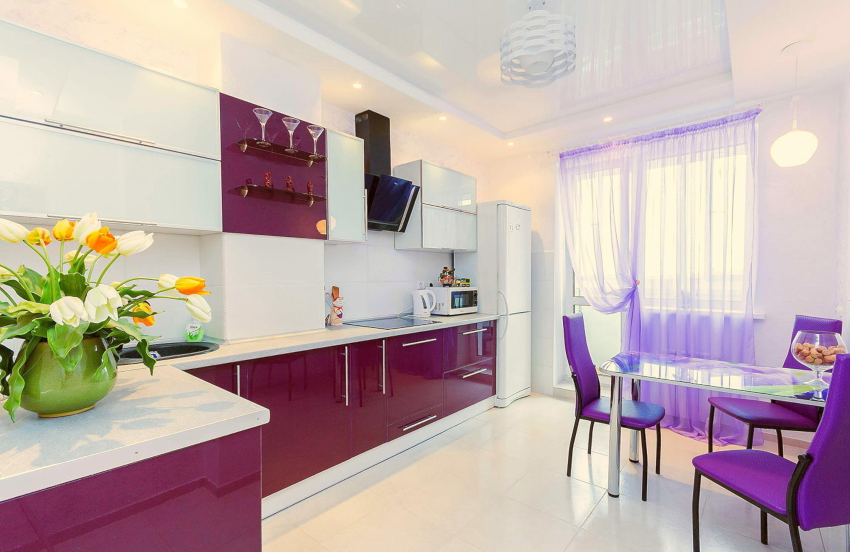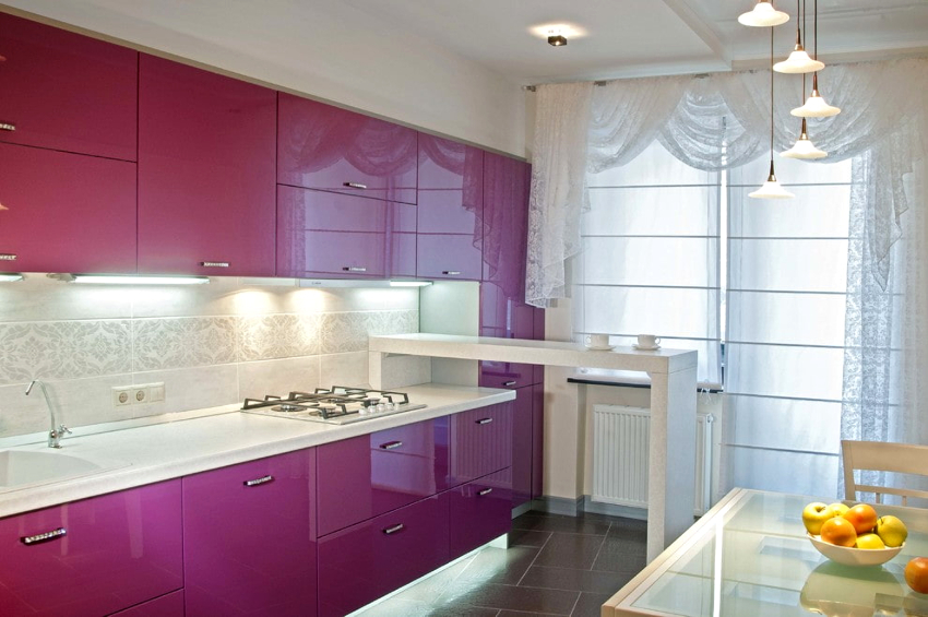 Before choosing a model of curtains for the kitchen, you should decide in advance on the color of the curtains that will look organic in the room. In addition, it is important to pay attention to the length, ornament and decor elements that fit beautifully into the interior of the kitchen. The choice of the color of the curtains is influenced not only by the color scheme of the kitchen, but also by some of the nuances of the layout and even lighting.
