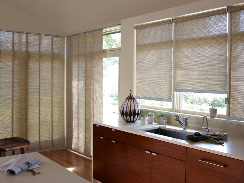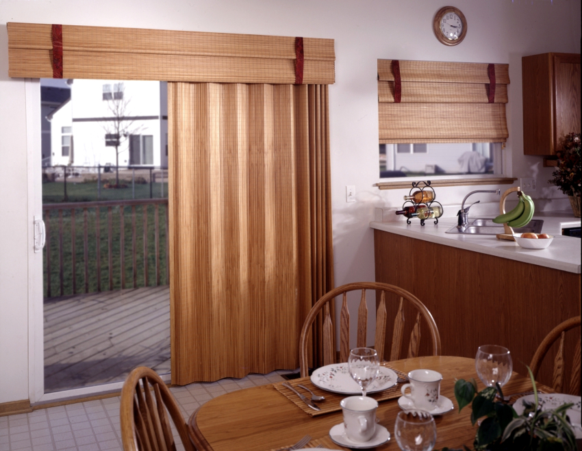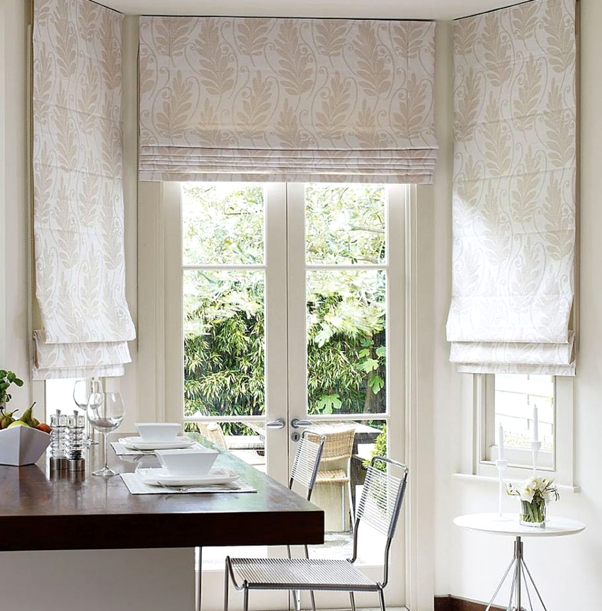 - 5 Features of the design of curtains for the kitchen with a balcony door: Roman and roll models