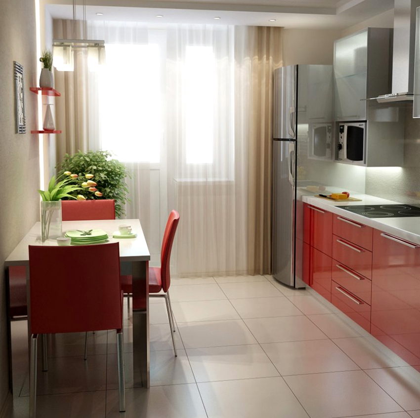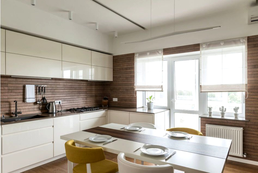By decorating a kitchen with a balcony with curtains that correctly close the balcony block, you can make the interior complete and harmonious. If you choose the right textiles, it will be possible to favorably emphasize the features of the layout and beautifully hide all the flaws of the kitchen.