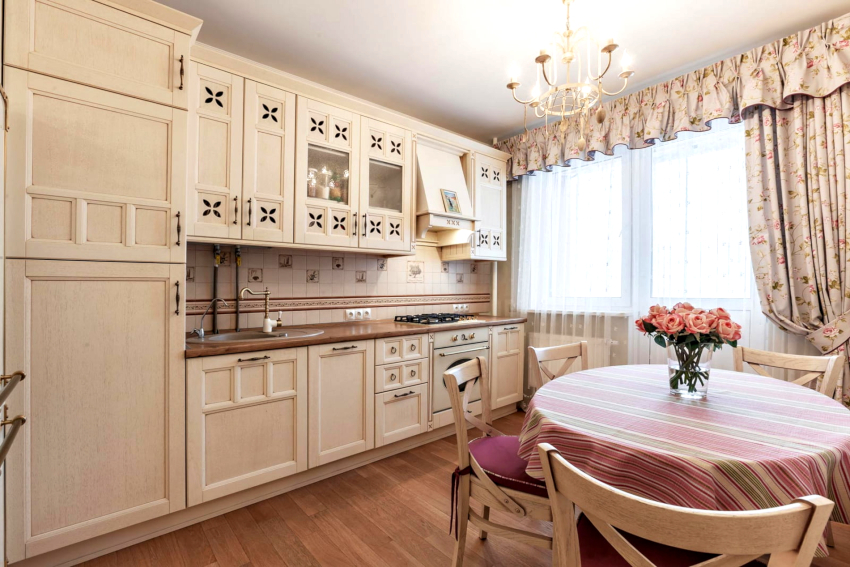 Helpful advice! If the kitchen faces the sunny or southwest side, it is important to choose fabrics that are resistant to fading. This is due to the fact that poor-quality material in such conditions will discolor and shed for a year or a half.