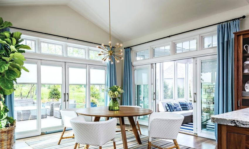 Natural fabrics that are chosen for curtains in a room with a balcony are best suited: linen, jute, hemp, silk, cotton