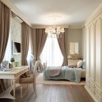 The design features of the curtains are determined by the style decision. Models for a classic interior are distinguished by their refinement, beauty of lines, and the presence of decorative elements. It is recommended to use colors that are already found in the interior for the manufacture of such curtains.