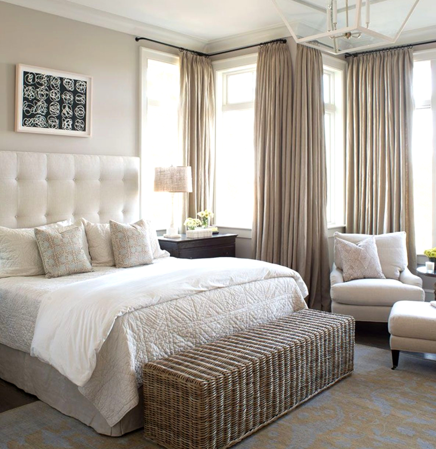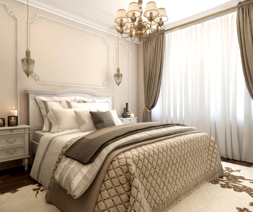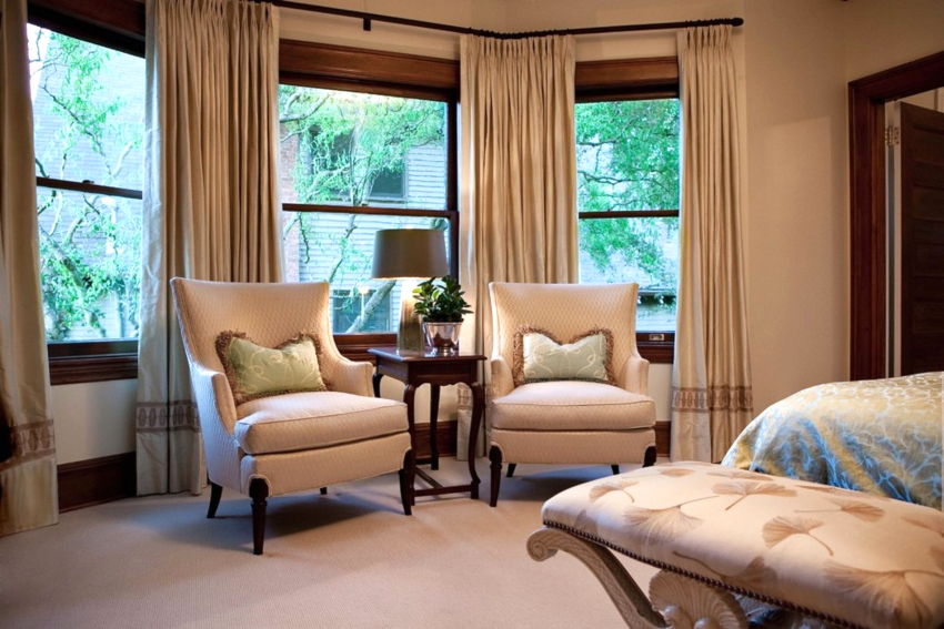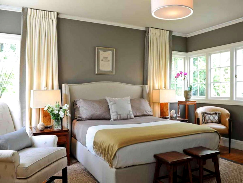 Curtains play a significant role in creating the general color background of such rooms. They should not merge with the color of the walls, otherwise the room will become faceless. For example, it is better to choose curtains for a beige bedroom 1-2 tones darker or lighter than the dominant shade. You can decorate with warehouses, pickups. Such a window will become a noticeable element of the interior, but will not be a separate area of the room.