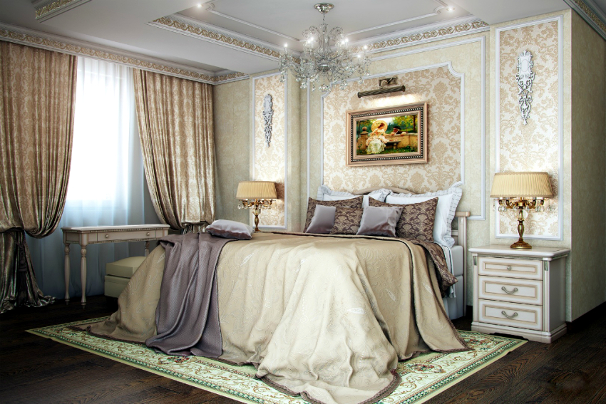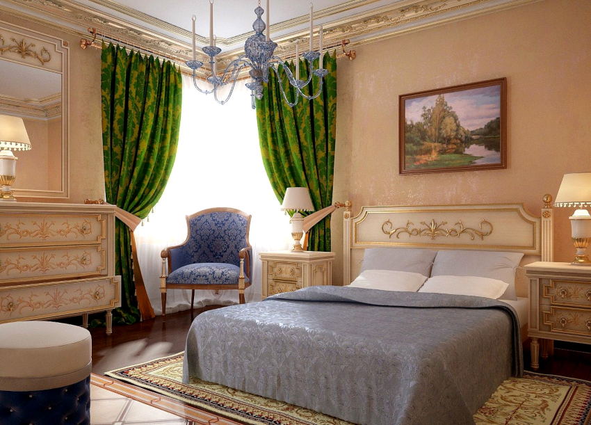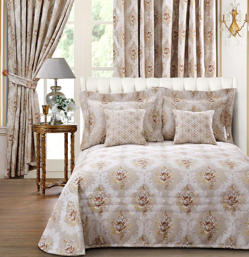 Benefits of using sets: curtains and bedspread for the bedroom in one fabric