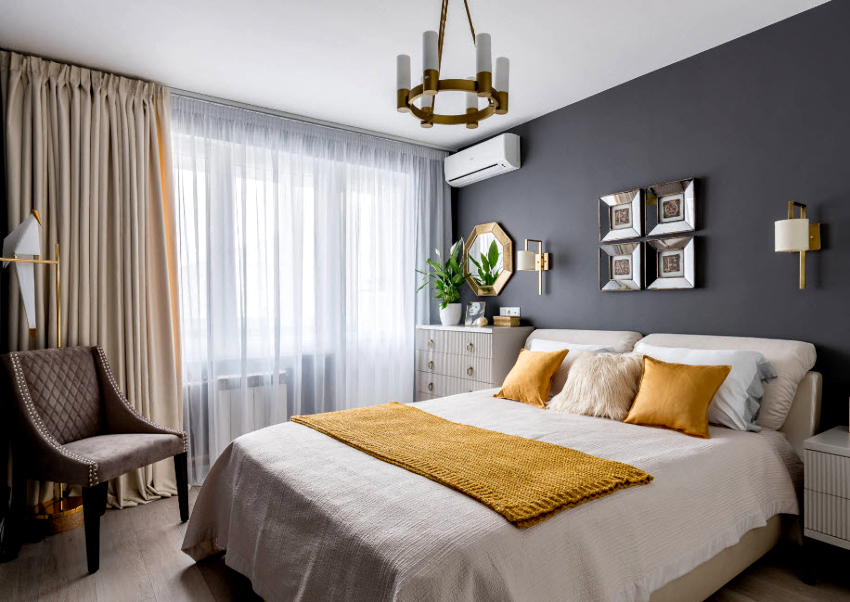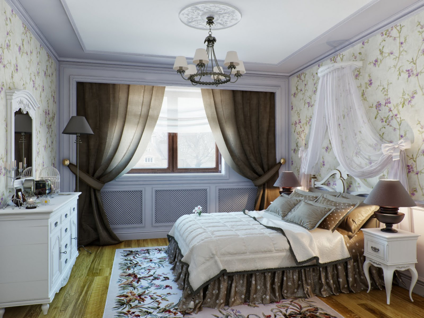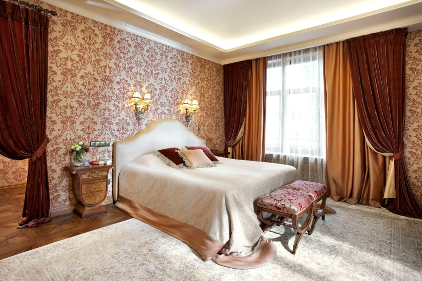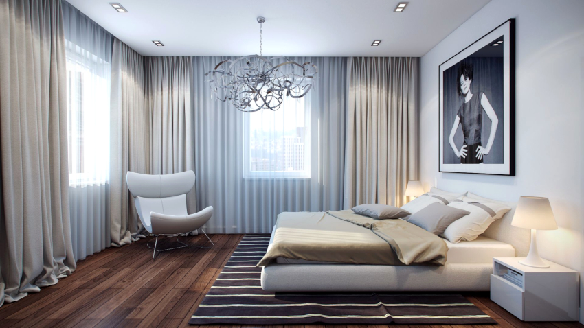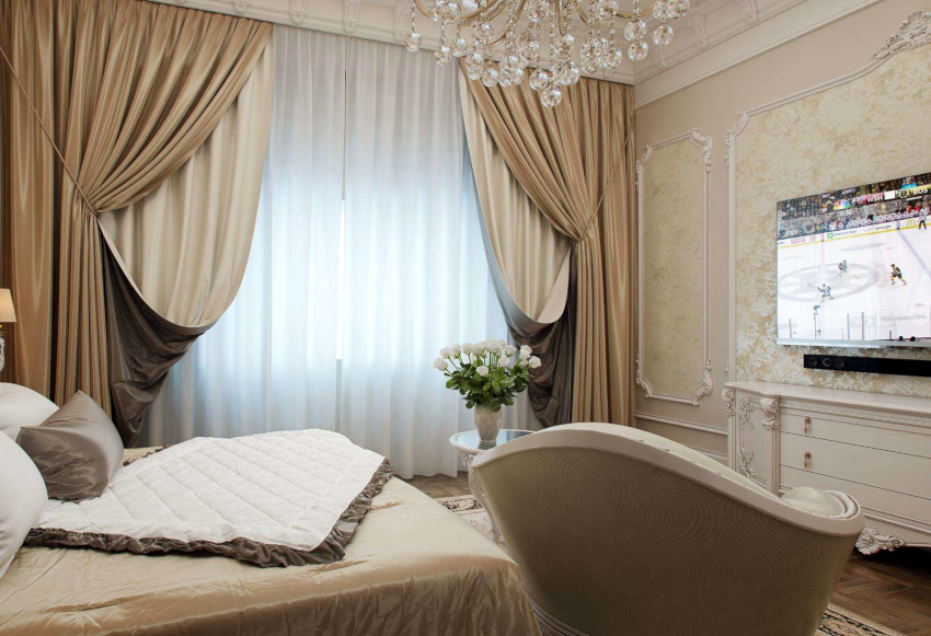 Decorating the bedroom interior involves creating an intimate atmosphere and privacy in the room. Hence, curtains are an essential element. Their sizes, determined by the modern parameters of windows, are selected taking into account some interior features. Regardless of design, bedroom curtains must meet the following requirements:
