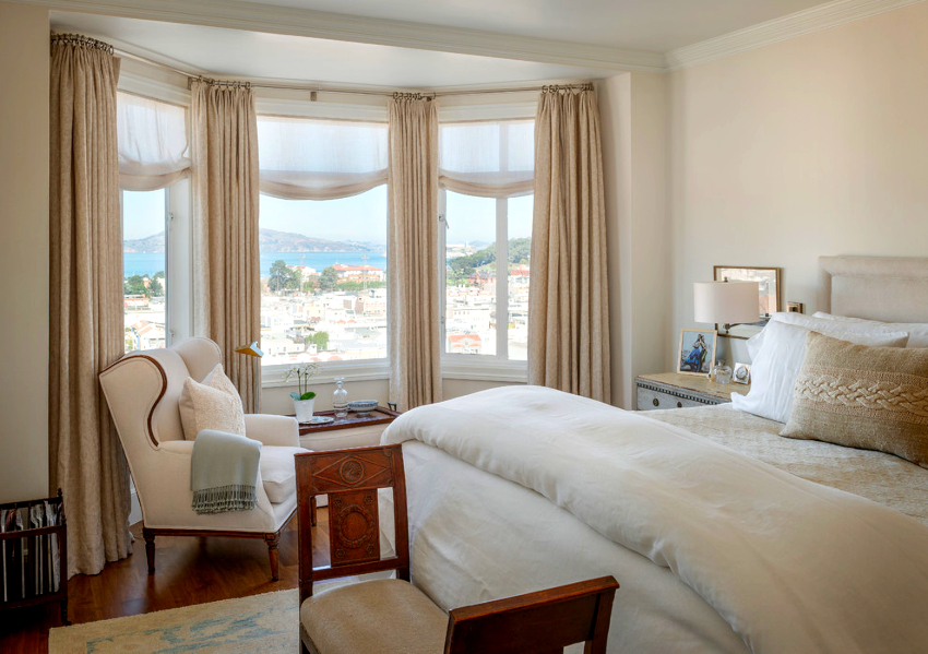 Bay windows are a decoration in themselves, therefore it is necessary to choose a curtain option so as not to spoil the interior