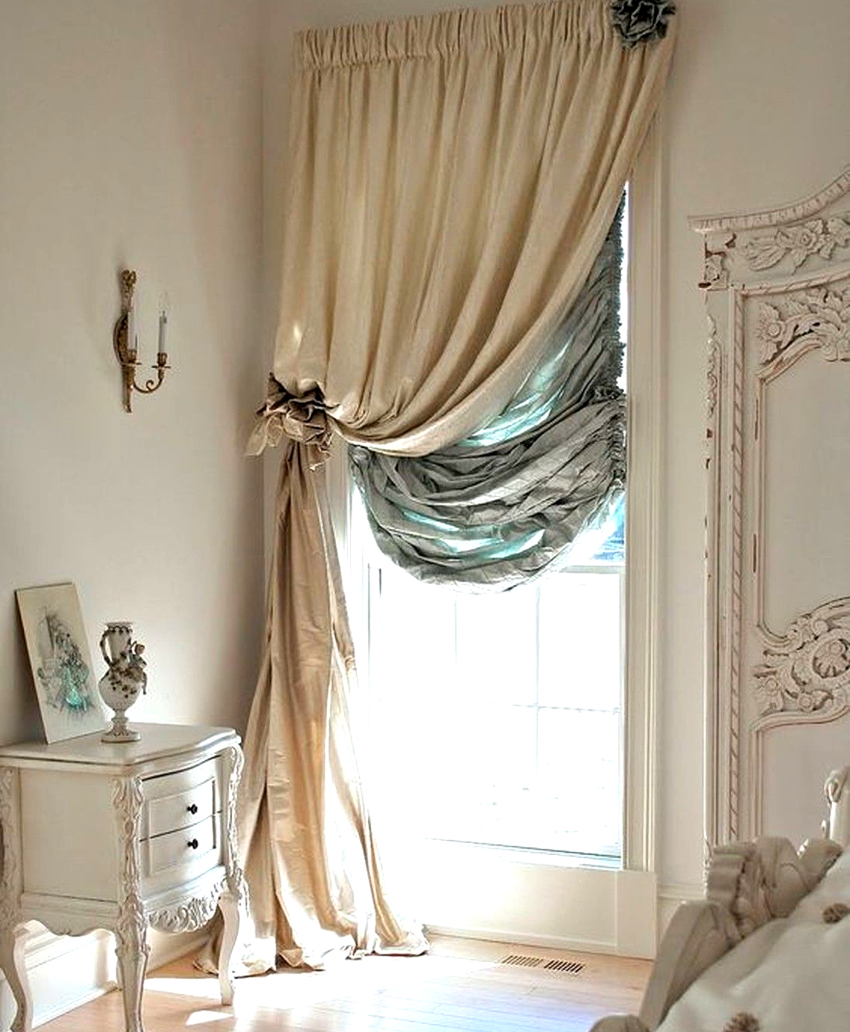 Looking through the recently posted photos of bedroom curtains, you can see a tendency towards a heavier bottom. On curtains, the effect is achieved by volumetric embroidery, on thick curtains - by lengthening the canvases (the lower part of the curtain lies on the floor).