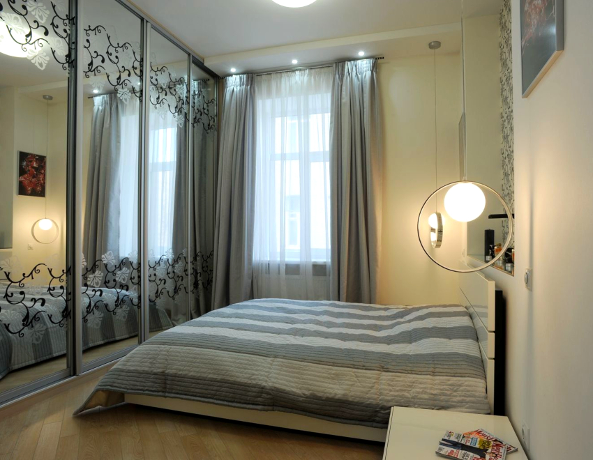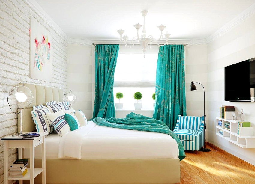 So that a small room does not seem even smaller, you cannot overload the bedroom interior with large curtains.