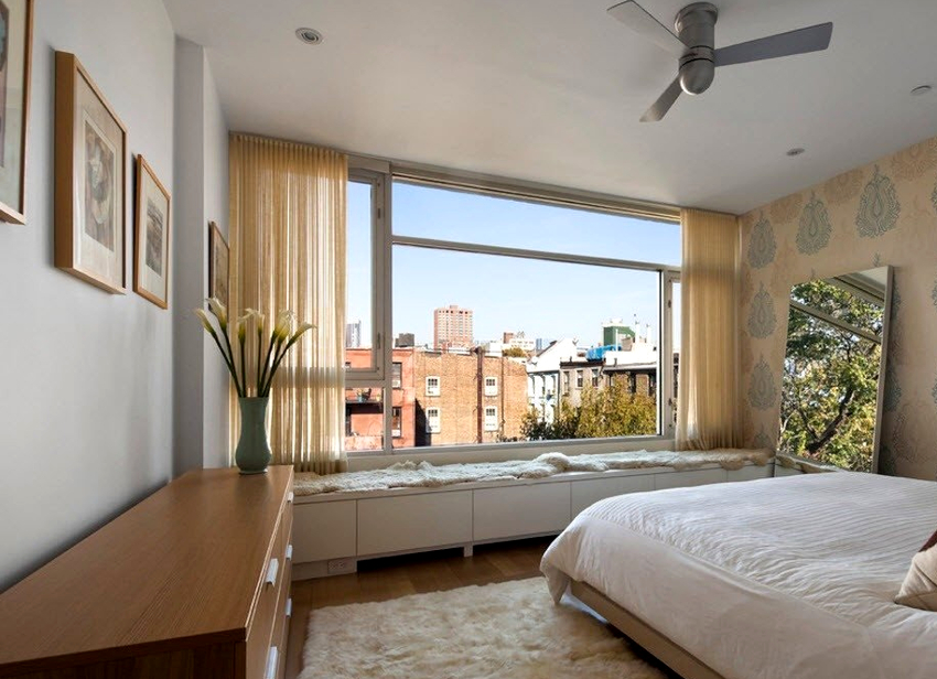 The main point affecting the design features of modern windows in rooms is the tendency to increase them. Bedroom windows are no exception. Window openings with a large glazing area provide a lot of natural light, which cannot be fully replaced by any type of artificial lighting lamps. Also, quite often, panoramic windows are installed in the bedroom, that is, from ceiling to floor.