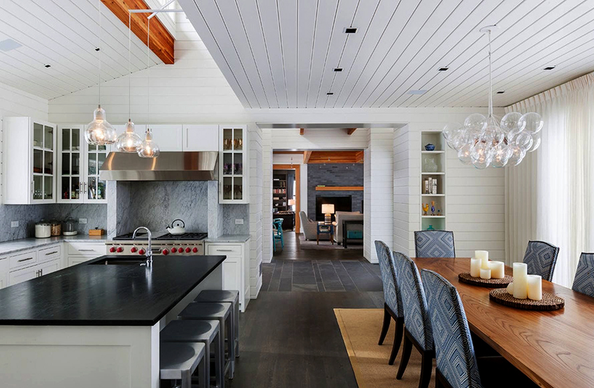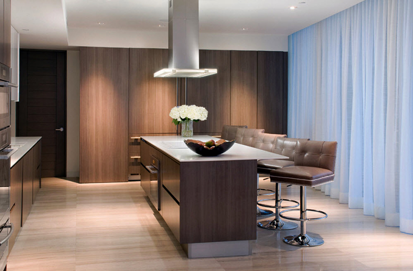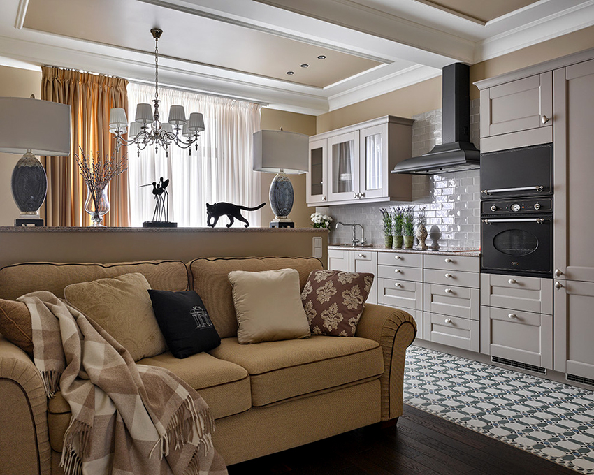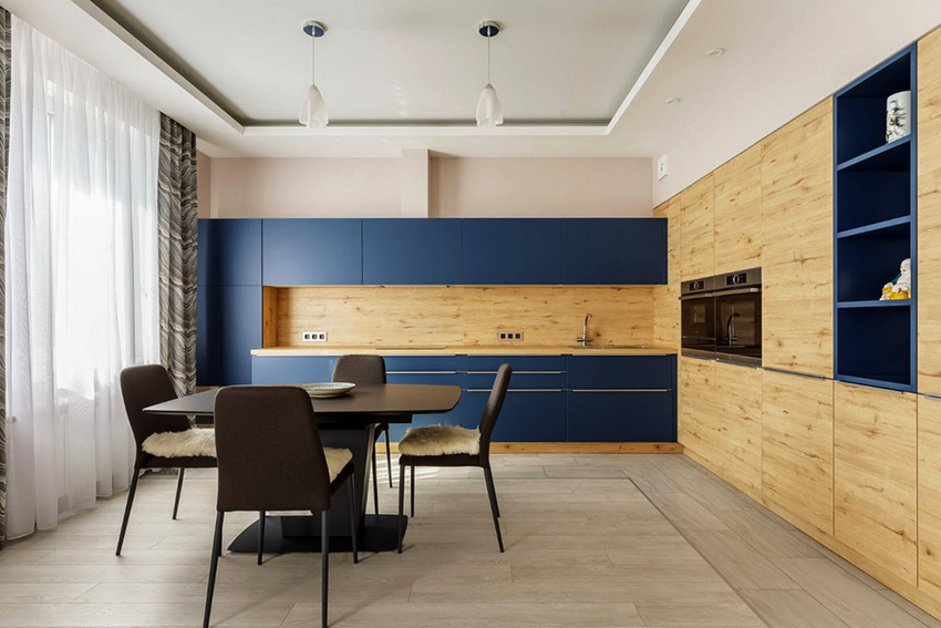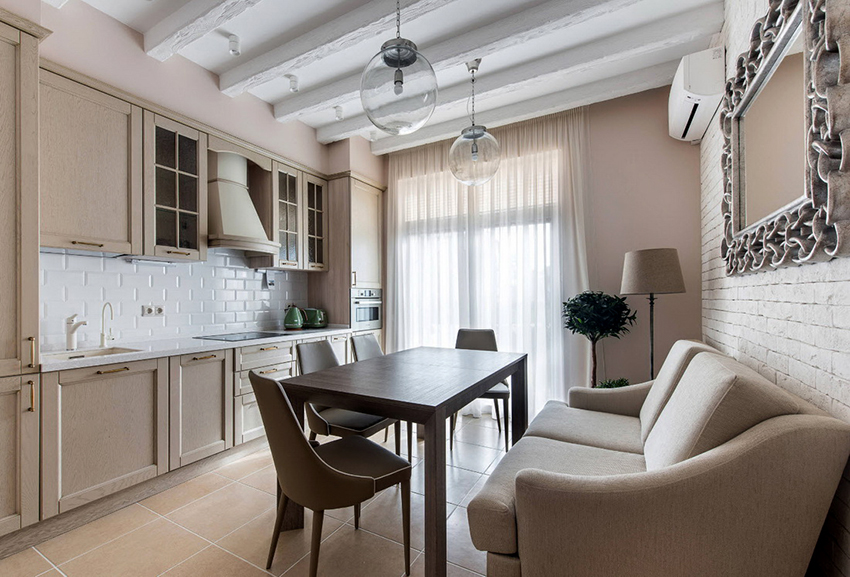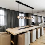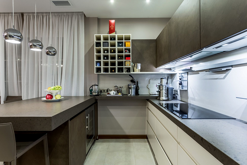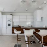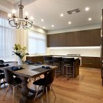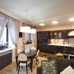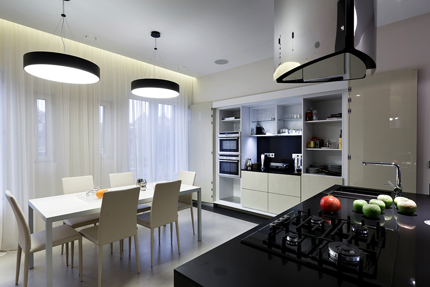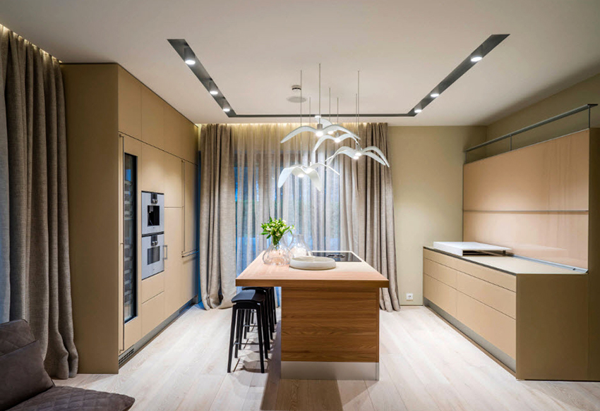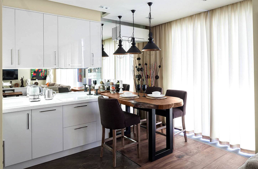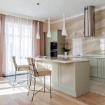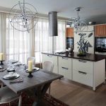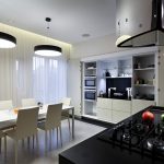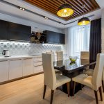 - When choosing the length, not only the height of the ceilings is taken into account, but also the general interior of the kitchen, the arrangement of pieces of furniture and equipment.