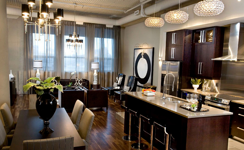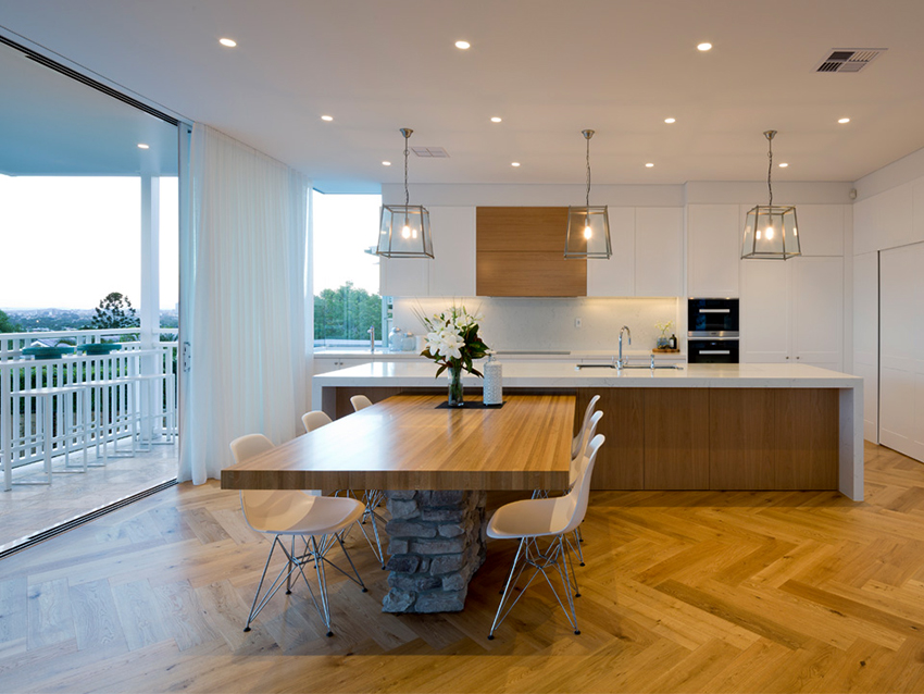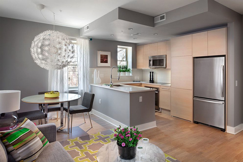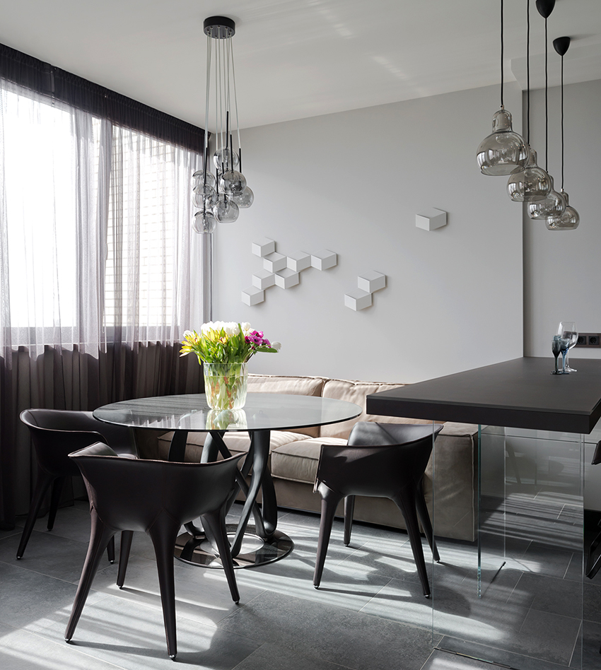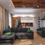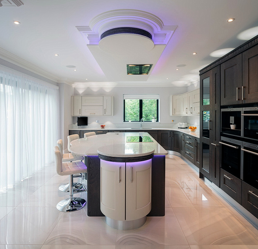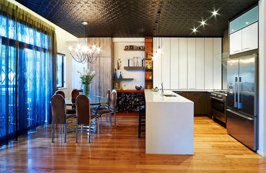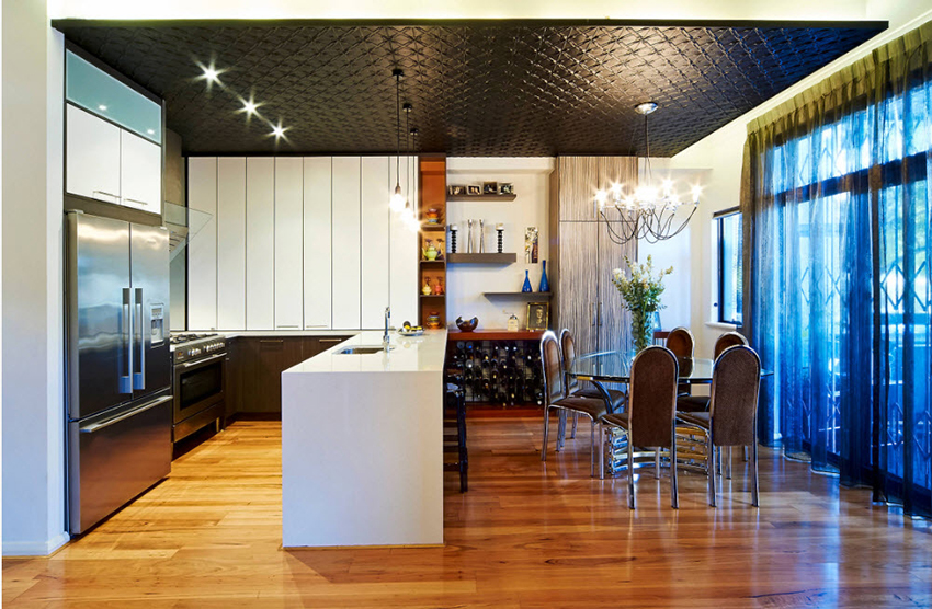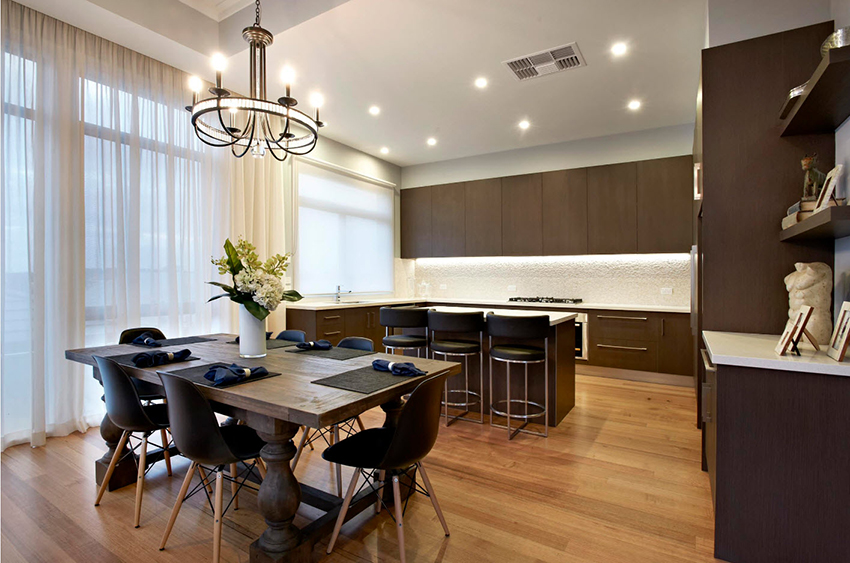 - When choosing the length, not only the height of the ceilings is taken into account, but also the general interior of the kitchen, the arrangement of pieces of furniture and equipment.