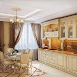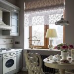 Kiseya-tulle in the kitchen with a soft-type lambrequin allows you to make the room more solemn, and if you use a hard version of the lambrequin, then a more strict atmosphere is created in the room. In any case, whatever version of the lambrequin is used to decorate the window opening, it still helps to complete the interior of the kitchen. If you correctly approach the choice of a lambrequin, you can visually change the shape and proportions of the window opening.