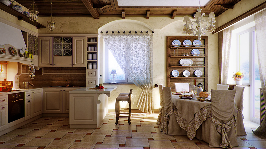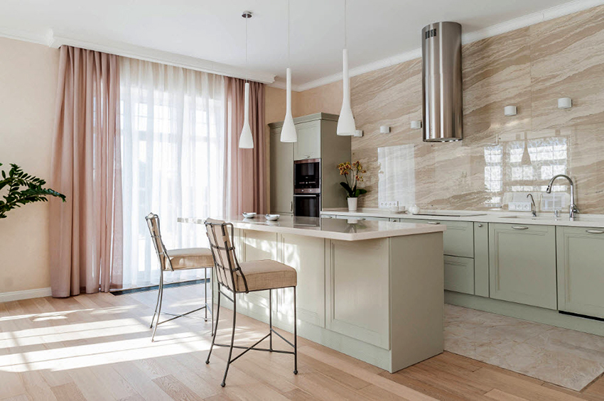 How to choose the right tulle color: photo of kitchen interiors